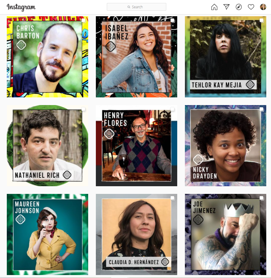 Social Media: 2020 San Antonio Book Festival Instagram Grid – created individualized graphics and social media post copy for 120 authors